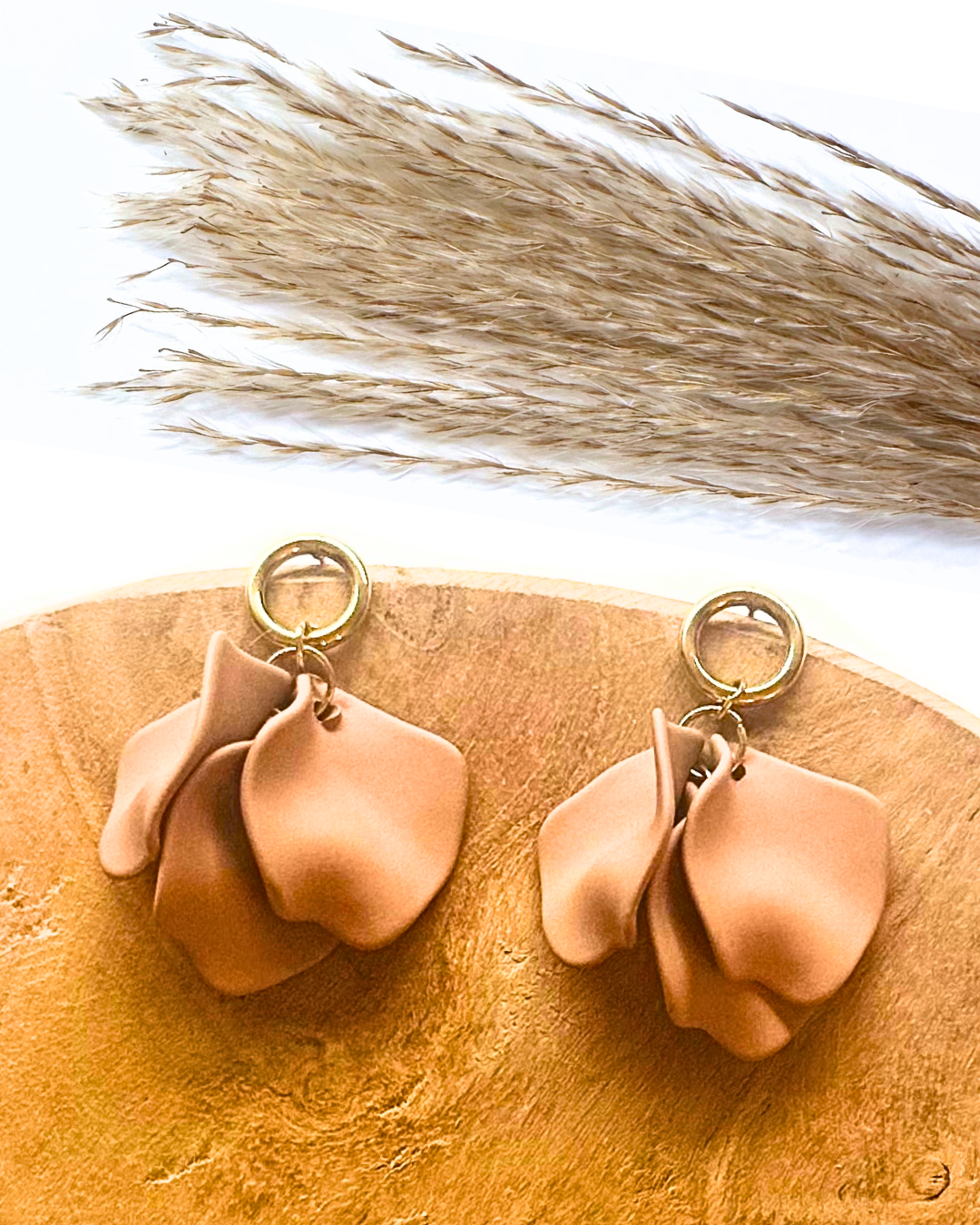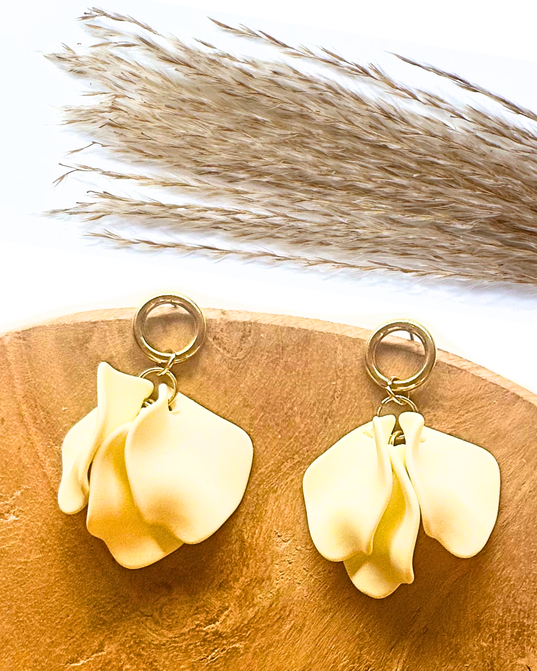 La puce d’oreille est en acier inoxydable doré. Les pétales sont en acrylique.