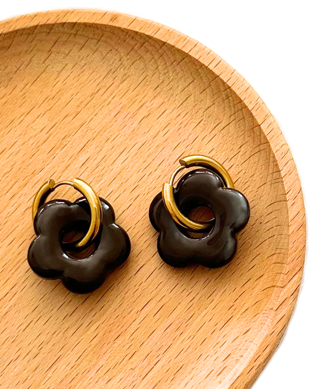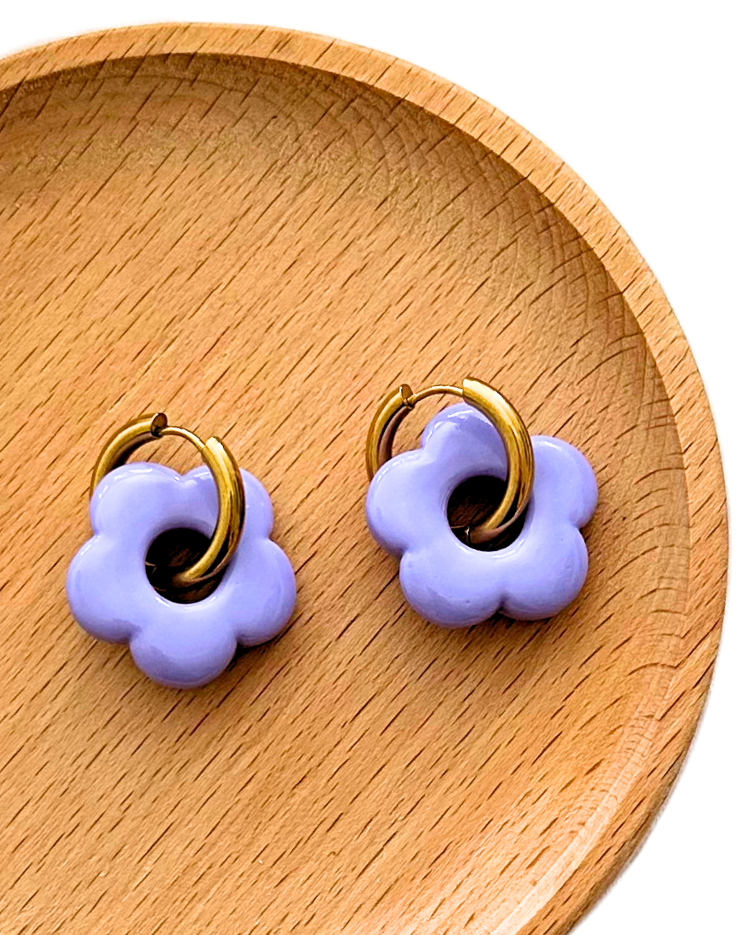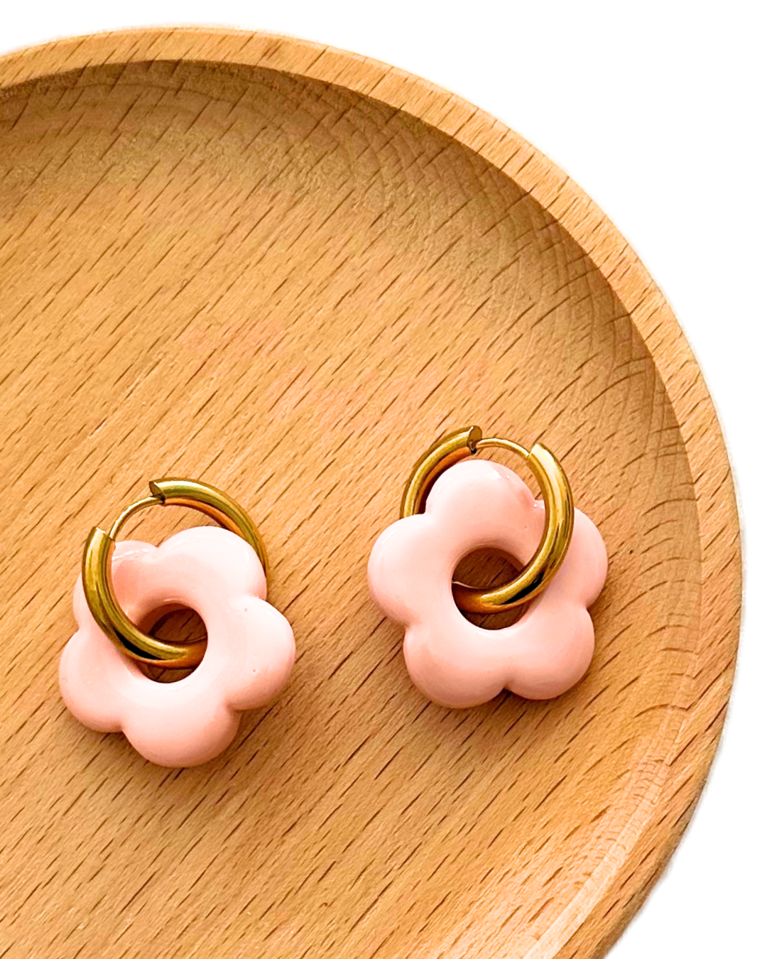 Les anneaux sont en acier inoxydable et les fleurs sont en acrylique.